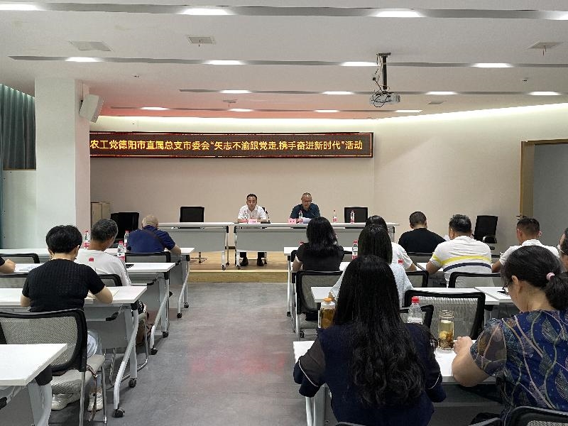 2022年7月1日,农工党德阳市直属总支委员会在旌阳区高槐村党群服务中心开展“矢志不渝跟党走、携手奋进新时代”政治交接主题教育。市委会副主委周丽姬、原宁出席,离任老领导、直属总支党员代表参加。