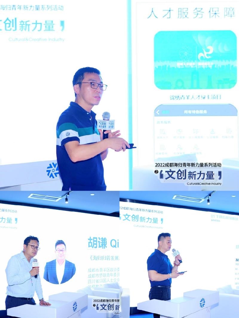 活动特别邀请青羊区人才发展中心主任朱攀,从重大人才项目申报、优化人才服务保障、“青睐工程”人才政策等3个方面,现场解读省、市、区三级相关人才政策利好,号召广大归国留学人才用好当下的创新创业环境和政府扶持政策,为“人文青羊·航空新城”建设添砖加瓦,贡献海归力量。在“蓉归成都·魅力青羊”主题分享环节,青羊区资深海归代表——四川省归国人士企业联合会轮值会长胡谦、四川省归国人士企业联合会文创艺术专委会会长邹睿博士,分别就《资深国际教育人士看海归归蓉发展及青羊机遇》以及《成都创建世界文化旅游名城青羊区的机遇与挑战》进行现场分享,探讨海归人才发展趋势,全面剖析青羊建设价值点。