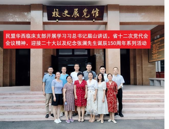 7月7日,民盟四川大学基层委员会临床支部开展学习习近平总书记来川视察重要指示精神、省第十二次党代会会议精神、纪念张澜先生诞辰150周年系列政治交接主题学习教育活动。民盟四川大学委员会副主委陈雪融教授参加活动。
