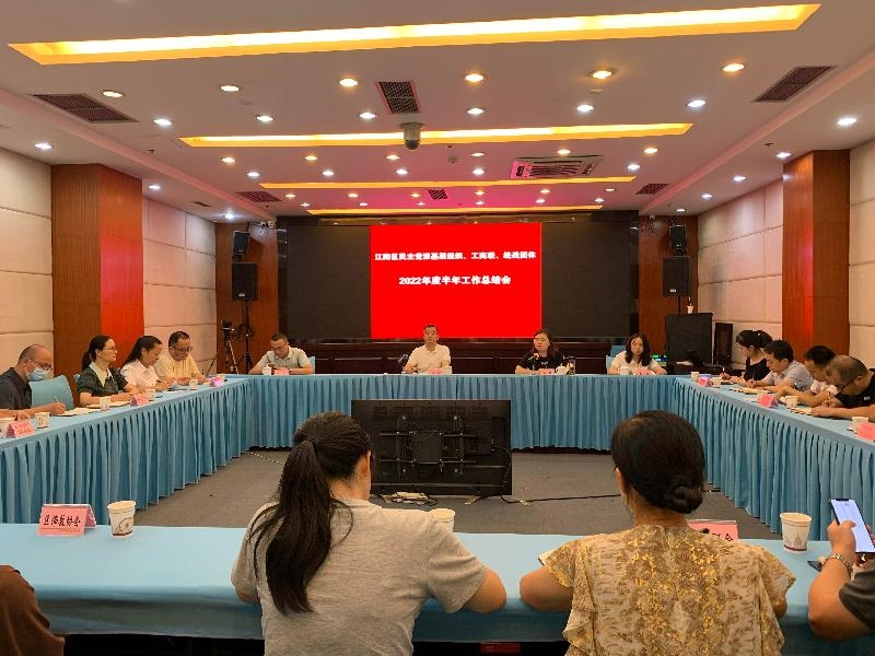 7月12日下午,泸州市江阳区召开各民主党派基层组织、工商联、统战团体2022年度半年工作总结会,总结上半年工作,安排部署下半年工作。全区各民主党派主委、副主委,区工商联常务副主席,区知联会、区新联会、区乡联会、区佛教协会等各统战团体会长,区委统战部(区民宗局)机关干部职工共20余人参加会议。