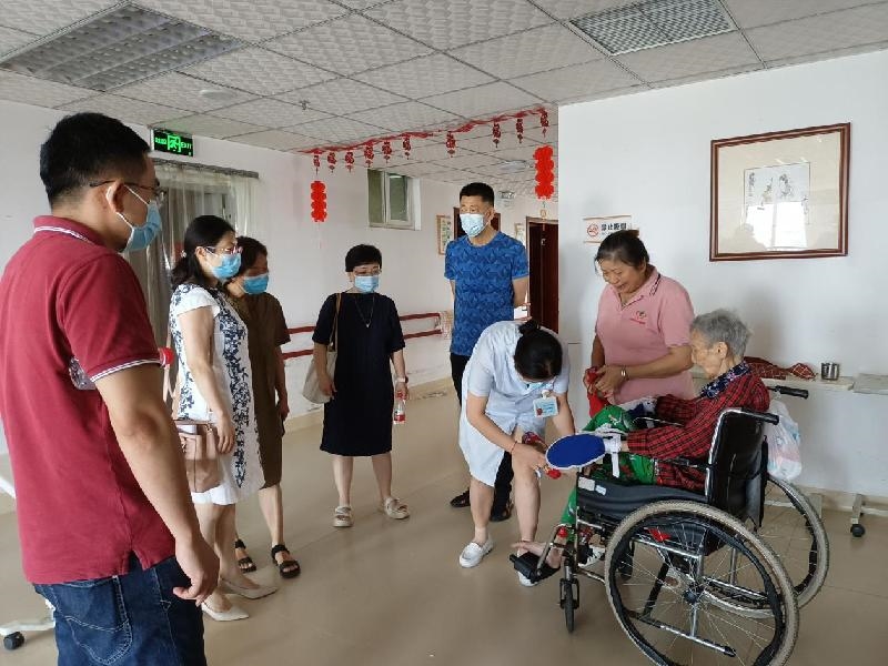 调研组一行参观了福利院养老区、医疗区和老人休闲娱乐区等场所,实地察看入院老人健康护理、起居生活等情况,仔细询问老人及家属的疗养体验和日常需求,听取了泸州市福利院关于医养结合工作情况的介绍,并就如何促进医养融合度进行了深入探讨。