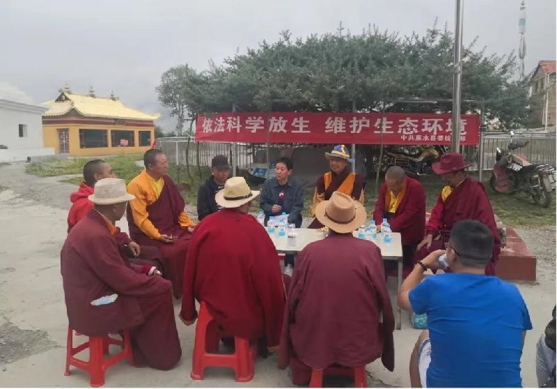 黑水县委统战部联合县民宗局、县科农牧局、木苏镇寺管所深入黑水县西巴寺开展“科学放生、依法放生”科普宣传活动。