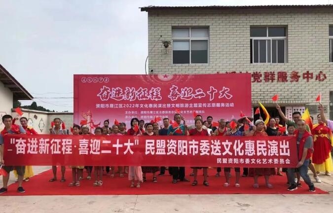 7月13日,民盟资阳市委会文化艺术委员会在雁江区老君镇大溪村组织开展“奋进新征程·喜迎二十大”送文化下乡惠民演出活动。