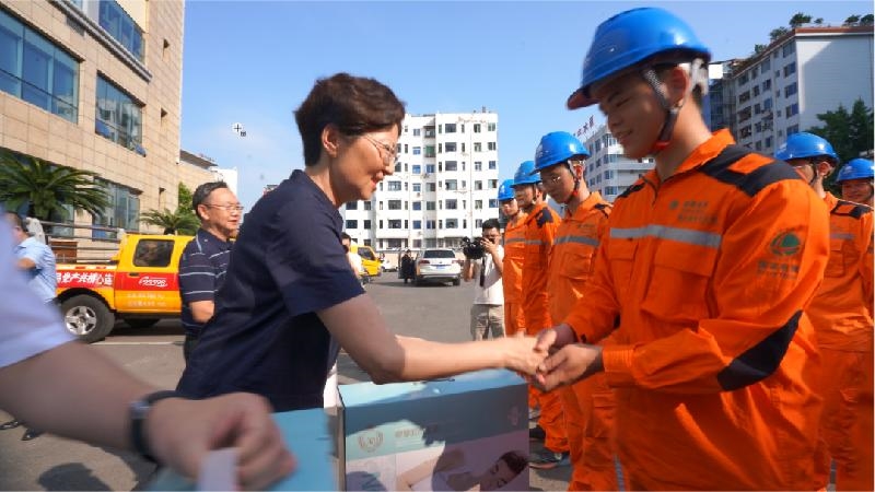 温奇志向长期以来为辖区供电保障辛苦付出,并在持续高温天气下,仍坚守一线的全体供电抢险一线职工表达了感谢。同时,温奇志一行还为江北供电所“连心桥共产党员服务队”的27名一线职工,送上了装有防暑降温药品和凉席的“清凉”慰问包,并嘱咐大家在工作中要注意防暑降温,科学做好安全防护。