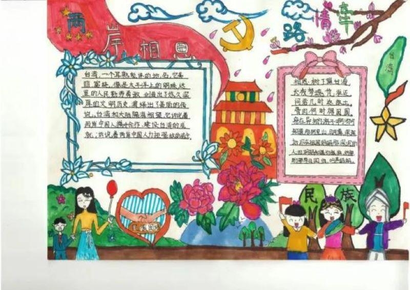 在大竹县第十小学,各班开展“涉台教育”手抄报比赛,同学们有的手绘台湾地图,有的讲述台湾历史和文化,内容充实,紧扣主题,孩子们用最绚丽的图案、最生动的语言、最真实的情感,展示了“海峡两岸一家亲”的主题。