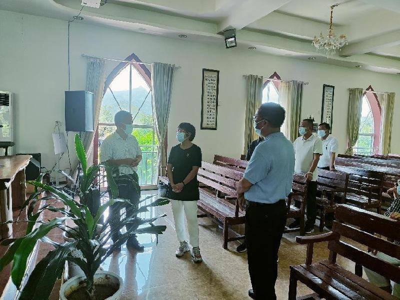 在米易县基督教永生堂,场所负责人详细介绍了宗教活动场所“六进一创”情况及规范化管理建设工作情况,马晓凤强调要健全完善各项管理制度,提高宗教教职人员的能力与素质,加强内部管理,坚持宗教中国化方向;要持续做好疫情防控、森林草原防灭火、消防安全等工作,确保宗教领域安全和谐稳定。