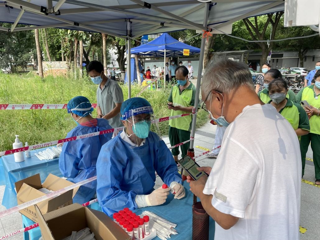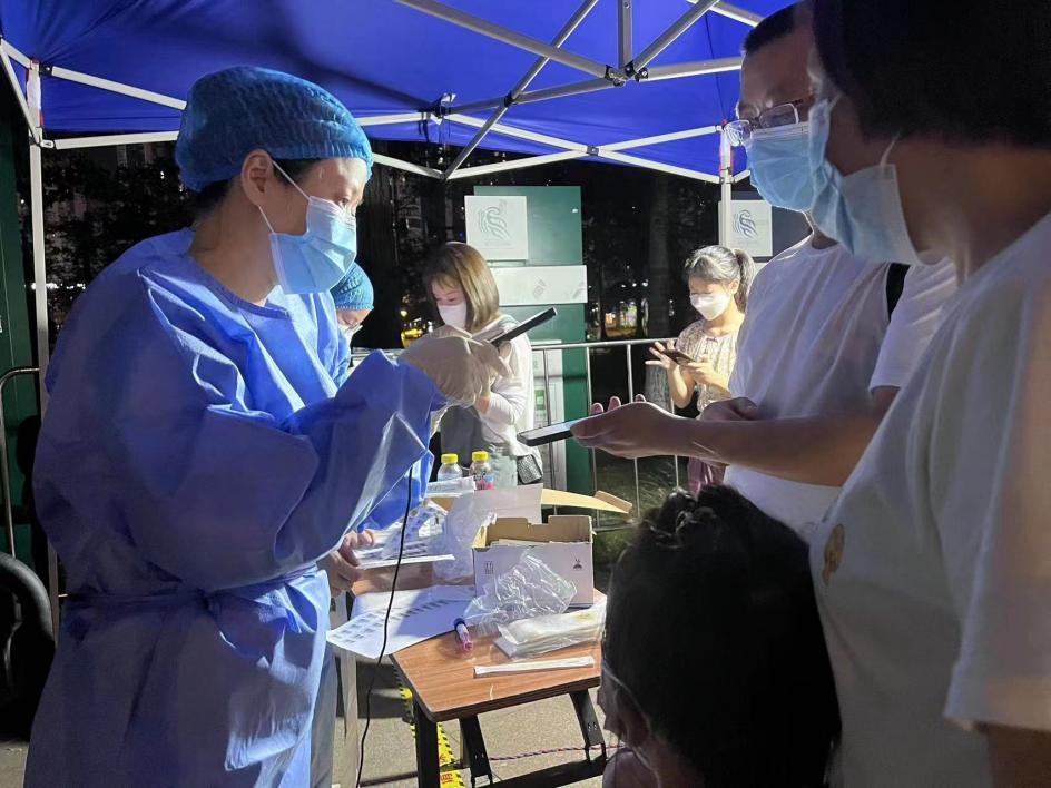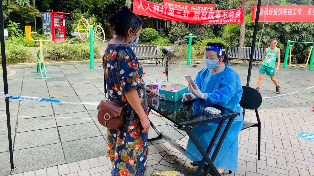 7月20日,青羊区委员会委员曾丹在温江区亚洲湾陪同区级领导现场视察采样点位工作。7月30日晚上,她还在温江区亚洲湾便民服务采样点参与群众核酸采样志愿者工作。
