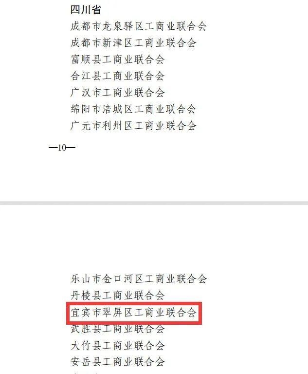 此次为首次评选,全国共评选208家,四川省共获评13家,宜宾市仅翠屏区唯一上榜。从2017年起,翠屏区工商联已连续5年获评全国“五好”县级工商联。