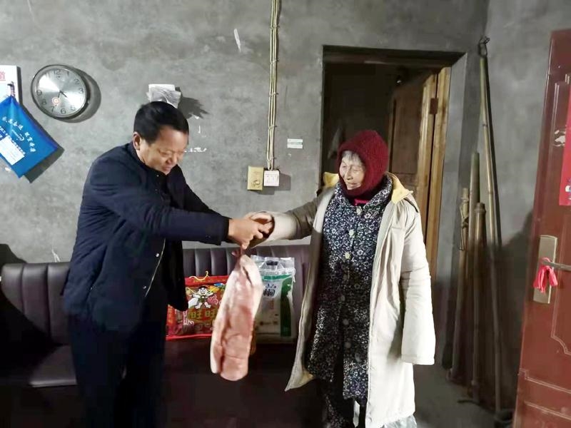马芝良(右)为徐正芬送去猪肉等慰问品