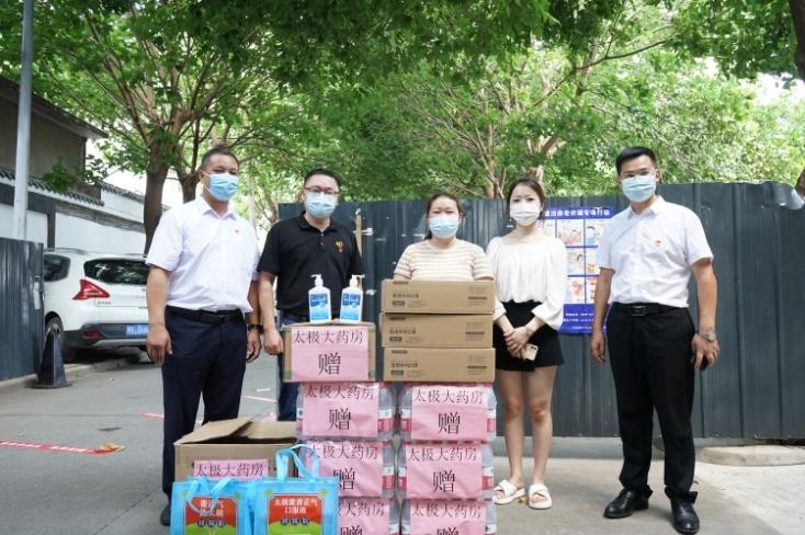 8月10日-12日,市委统战部非公有制经济组织综合党委牵头组织太极集团德阳荣升药业有限公司党总支、太极集团大中药业有限公司党总支、四川顺安电子工程有限公司党支部、中国广电德阳公司党委、德阳畅享家居装饰有限公司党支部、德阳宇艳汽车修理厂党支部等非公企业党组织为旌阳区东湖街道凯江路社区、旌阳街道堰塘坝社区、西小区社区、花园巷社区、浦东社区、珠江路社区、文庙社区、孝感街道杨柳村和经开区天山路社区、龙井社区、双榕社区和京昆高速南出口等核酸检测点捐赠口罩7400只、矿泉水260件、酒精150瓶、洗手凝胶96瓶、藿香正气口服液580盒、喷漆50瓶、冰袋400个和牛奶、面包等防疫物资共计48700余元。