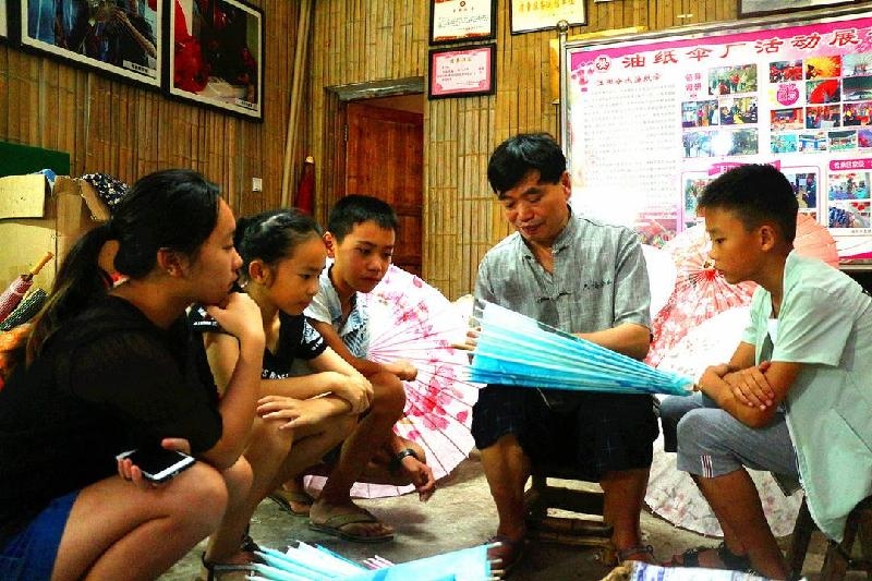 毕六福、毕原绅父子是油纸伞制作技艺国家级传承人。为弘扬传统文化,传承民族瑰宝技艺,近年来每到暑假期间,父子俩都会免费为孩子们开设油纸伞制作技艺班,给孩子们讲授油纸伞的制作技艺,深受家长和孩子们喜欢。