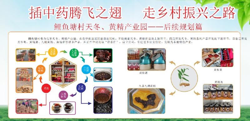“下一步呢,我们鲤鱼塘村会继续沿着镇党委、政府‘一场镇、二基础、三产业’的发展思路完成园区的建设。一要完善园区的电力配套设施,把短板补齐;二要继续开发天冬、黄精的系列产品,比如说天冬膏、黄精膏、九制黄精、黄精酒等等,丰富我们永福的‘永农汇’电商平台,让我们的产品卖的更多更好,三要尽快把‘梧农仁’商标申请下来,成立公司,吸引返乡妇女来我们鲤鱼塘创业,争创省级、市级乡村振兴示范村和市级、区级现代农业园区。”