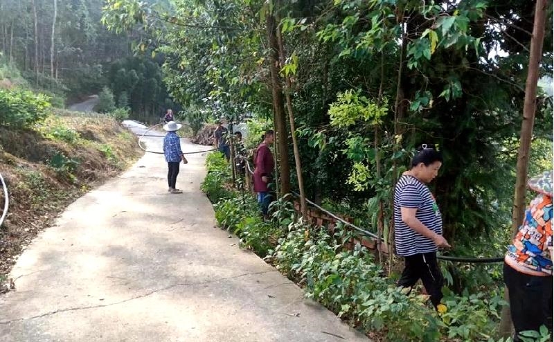 该饮水工程是乐山市沙湾区德胜钒钛公司乡村振兴战略项目之一。据悉,红阳村常驻居民900余人,几乎全部居住在山上,水资源匮乏,加之连日来持续高温干旱天气,人畜饮水极为困难。得知这一情况后,乐山市沙湾区德胜钒钛公司副总经理、工会主席刘青川面临高温“烤”验,8月25日在红阳村党总支书记许溯月的陪同下,到乐山市沙湾区福禄镇红阳村现场进行了调研,详细了解村民缺水的实际情况,最后确定需要对山顶的蓄水池进行维修处理,并更换4个村民小组损坏的饮水管道。