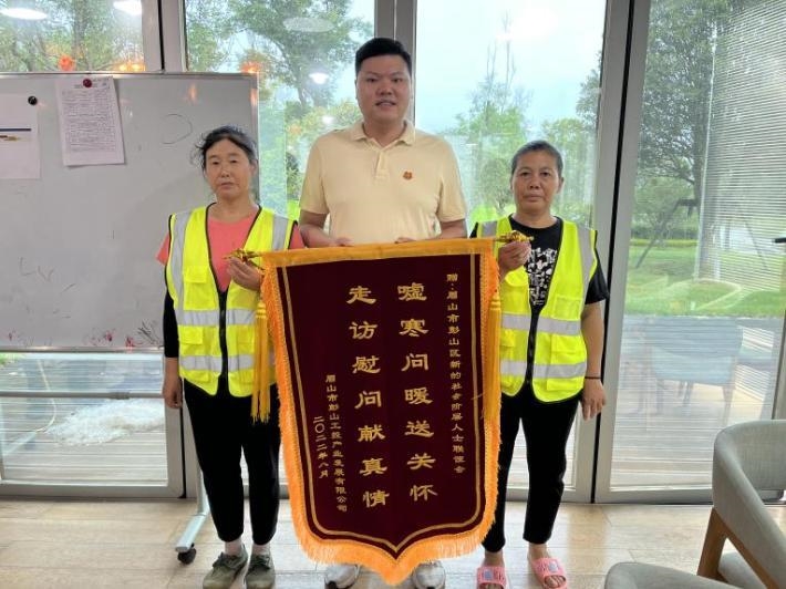 当天下午环卫工人们为区新联会送来了一面感谢锦旗,“大热天的,你们还来关心我们,给我们送来慰问物品,真是想得太周到了。我们会继续努力,为创造美丽整洁城镇作出新贡献。”一名环卫工人激动说道。