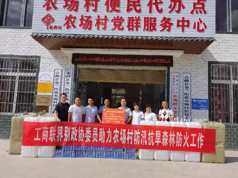 8月24日,古蔺县工商联倡议并组织工商联界别政协委员筹集现金10700元,用于农场村购买抗旱水管4000米,水桶40个、矿泉水40箱、防暑药品等物品运送到农场村,捐赠给缺水农户,助力防汛抗旱工作。