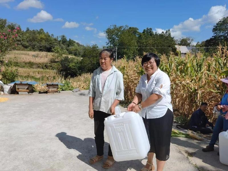捐赠仪式结束后,委员们入户走访,把水桶送到农户手中,在农场村五组召开坝坝会,为农户们宣传防汛抗旱、森林防火、疫情防控、道路交通安全等知识。