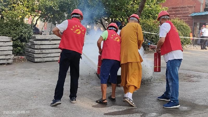 为贯彻落实“预防为主、积极消灭”的森林防火工作方针,有效预防和扑救森林火灾,确保宗教活动场所的安全稳定,8月25日上午8点,内江高新区在宗教活动场所开展消防知识培训和消防演练活动。街道干部、村社区干部、网格员以及辖区群众等30余人参加了本次消防演练活动。