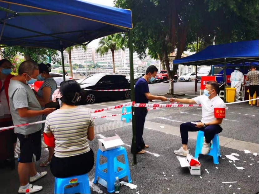 基层委副主委钟文、苏盅制一直在疫情防控一线连续奋战,主动参与辖区内核酸检测点位秩序维护、信息登记等工作,在负责点位协助社区完成全民核酸检测工作。