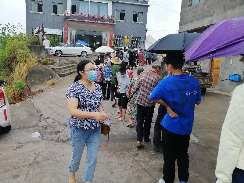 刚到村上,天空飘着细雨,村民们已经陆续来到检测点。干部们立即投入工作,有的负责搭建雨棚,有的负责维护秩序,有的协助村民申领“健康码”,大家忙中有序、配合紧密,核酸检测有条不紊地进行。
