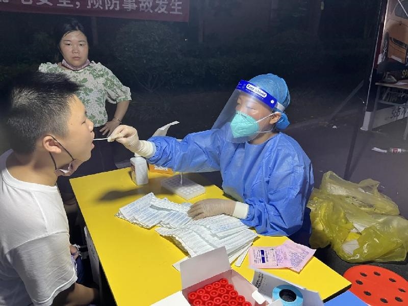 他们中有在高温下坚守在核酸采集点位的“蓝”朋友。党员胡燕、严丽娜、杨继辉、彭银春等医务工作者不论是烈日还是深夜,他们都坚守在自己的小方桌前,洗手、采样、装管每一次熟悉的流程只为早一点为群众采集核酸样本,消除群众对病毒的恐惧。