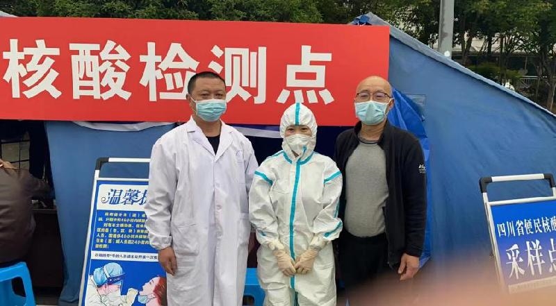 王氏正骨医院、川康医院相继抽调医院医务人员18名,在内江市城区、威远县及高石内威荣高速路口等卡点开展24小时核酸检测工作。
