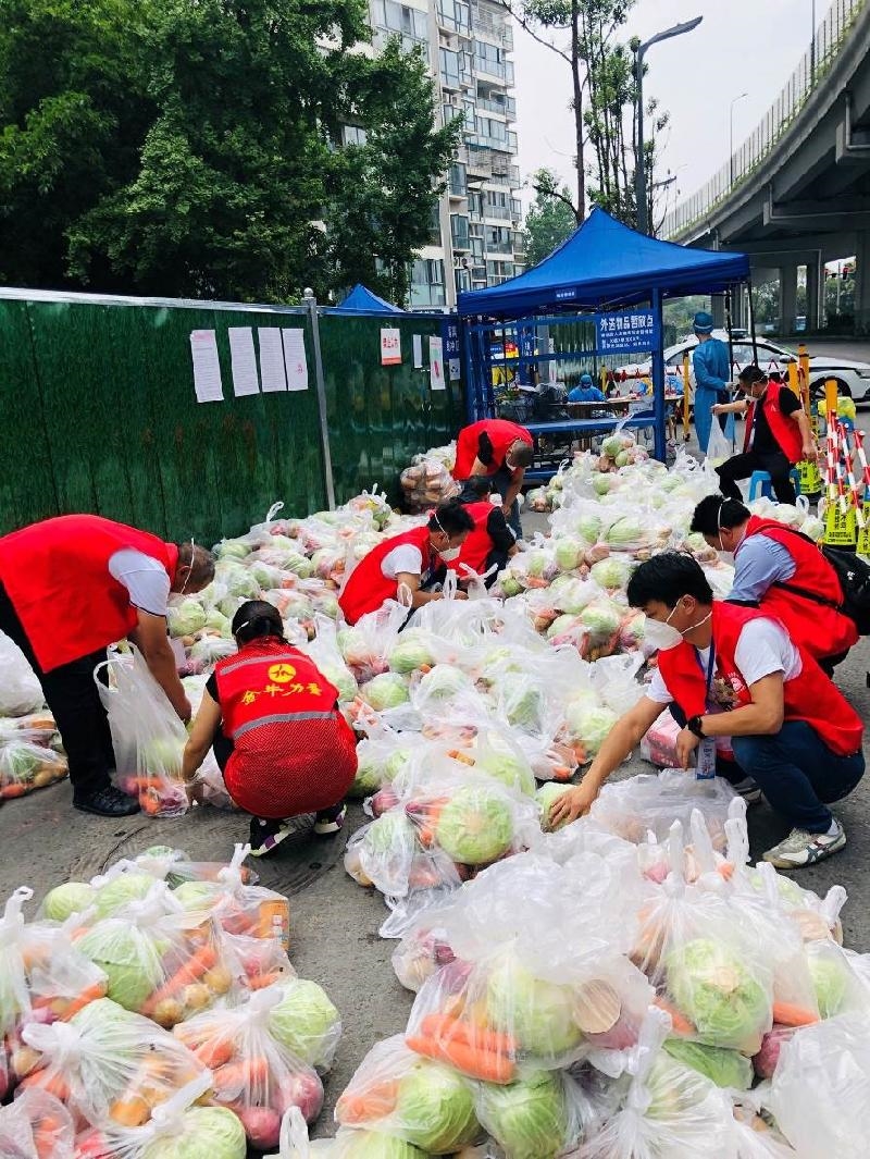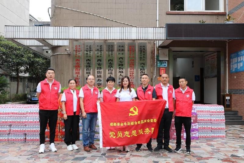 金牛区联合食品商会组织60多名党员到金牛区西安路街道、五块石街道等多个街道社区参加抗疫工作,向西安路街道捐献价值35000元的物资。