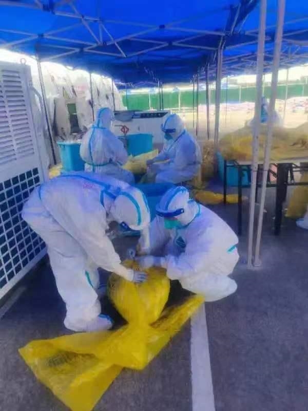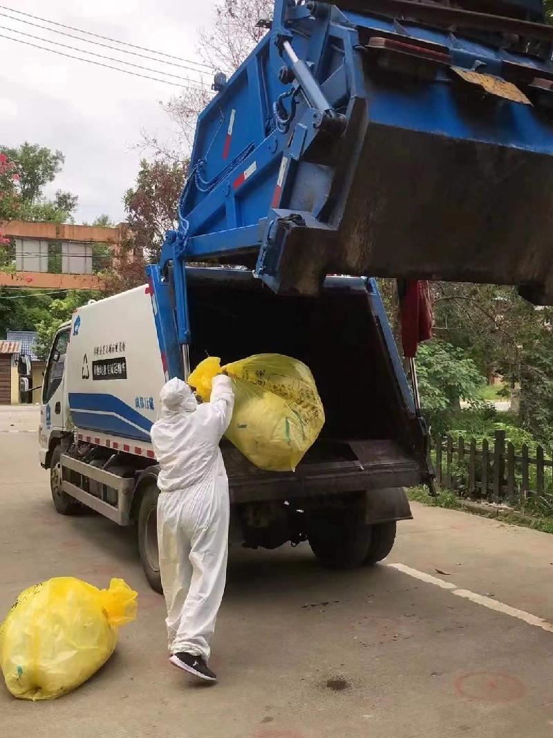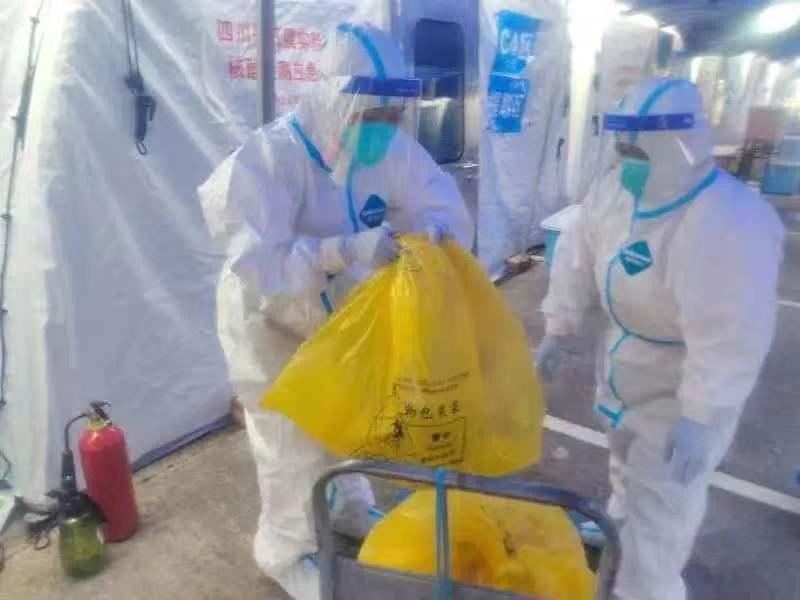 成都行健城市环卫服务有限公司派出2000余名环卫工人、400余台环卫作业车辆,对全市千余条街道进行“拉网式”消杀作业,每天完成100余吨的垃圾换袋清运工作。