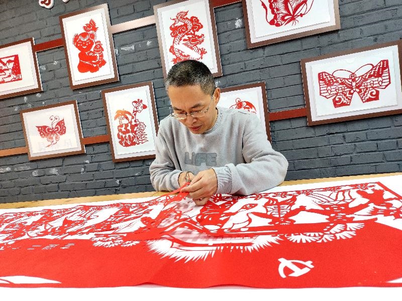 近日,杨尚禄经过精心构思,创作出一幅以“永远跟着共产党走”为主题的剪纸作品,以此表达自己对党的二十大胜利召开的喜悦心情。“我想用自己的方式表达此时的喜悦心情和对中国共产党的感恩之情!”杨尚禄表示。