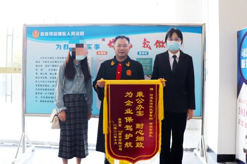 “邹法官你好!我们到大厅了,为感谢你秉公办案,我们有锦旗要送给你!”10月24日,沿滩区人民法院邹永明法官接到当事人自贡某商贸公司的电话。原来这是邹永明法官在组织当事人调解的一起案件,双方顺利达成一致意见,原告当庭拿到了货款后,为了表示感谢,给承办法官送来了绣着“秉公办案,耐心细致,为企业保驾护航”的锦旗。