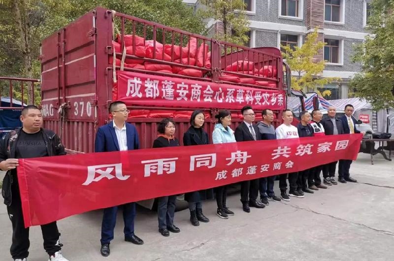 草科乡代表草科群众向成都蓬安商会一行表达了感谢,并表示现在全乡正在齐心协力自救,大家一定会以自强不息、艰苦奋斗、勇于拼搏的精神,全力做好灾后恢复重建工作,及时将毛毯全部送到受灾群众的手中并转达成都蓬安商会的深情厚意。