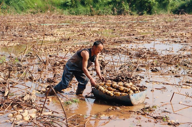 走进立石镇水鸭池村,夏季里亭亭玉立的荷花逐渐枯萎落败,但是水下的淤泥里却埋藏着金秋丰硕的果实。