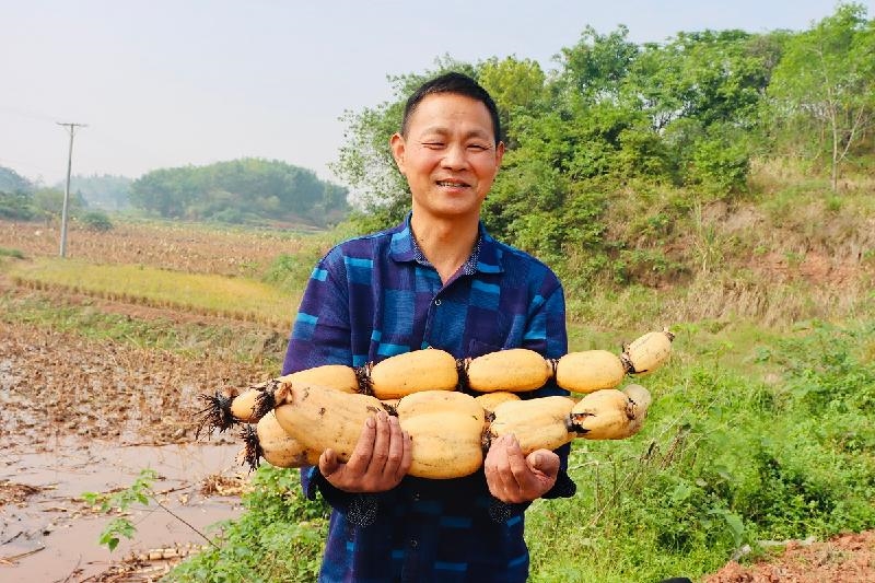 在连片莲藕种植园里,挖藕工人们正在田里辛勤劳作,密切配合,确保及时将新鲜的莲藕供货给泸州海吉星、重庆双福等农产品批发市场,成为市民餐桌上的美食。