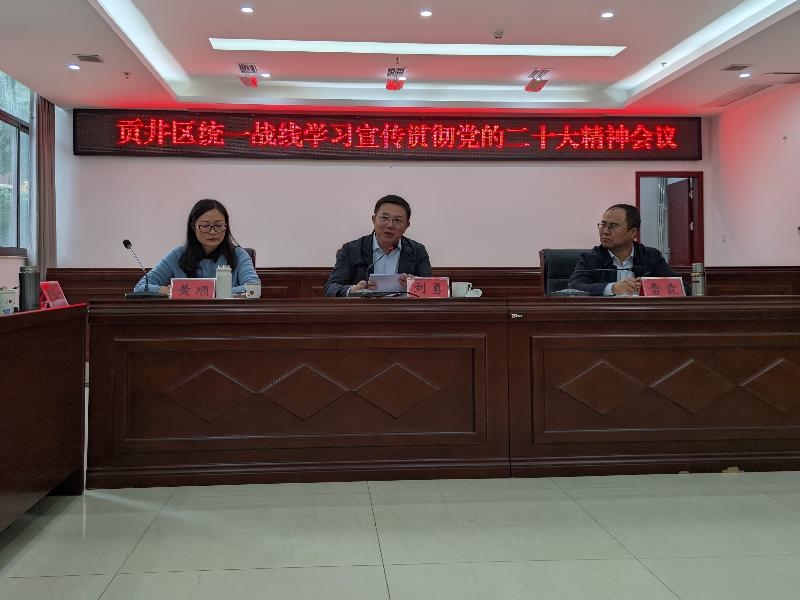 10月31日,自贡市贡井区召开统一战线专题学习会,传达学习党的二十大精神,区委常委、统战部部长刘勇出席会议并讲话。