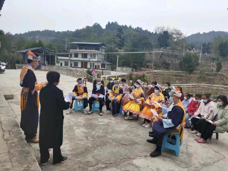 近日,古蔺县观文镇星凤村两委组织苗族同胞欢聚一起,宣传学习党的二十大精神。