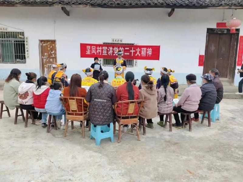 为了让宣讲更接地气、入人心,不断创新宣讲方式方法,星凤村党支部书记和苗族群众代表采用“普通话+苗语”模式,对党的二十大精神进行宣讲,力求通过生动形象、通俗易懂的双语宣讲方式,让当地苗族群众对党的二十大精神有更深入的了解。