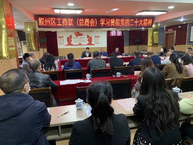 11月10日,叙州区召开工商联(总商会)二届二次常委会议,学习贯彻党的二十大精神,迅速在全区民营企业中掀起学习贯彻党的二十大精神热潮。区工商联(总商会)常委及以上民营企业参加。