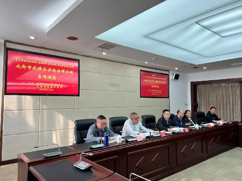 为了更好地学习涉侨法律法规、宣传涉侨法律法规、贯彻涉侨法律法规,营造知法懂法守法的良好氛围,维护侨界群众正当合法权益,进一步凝聚侨心、汇聚侨力,在第九个国家宪法日即将到来之际,成都市武侯区政府侨务和台湾事务办公室、武侯区归国华侨联合会于2022年11月11日联合举办了“成都市武侯区涉侨法律法规宣传讲座”。