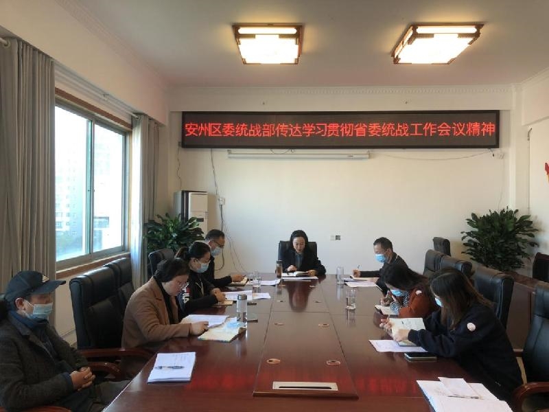 11月16日上午,安州区委统战部召开全体干部职工会,专题传达学习省委统战工作会议精神,研究我区贯彻落实意见。区委常委、统战部部长、总工会主席蔡晓玲主持会议。