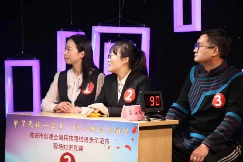 为认真学习宣传党的二十大和中央、省委、市委民族工作会议精神,广泛深入开展铸牢中华民族共同体意识宣传教育,推动民族团结进步事业向广度、深度延伸,11月11日,市创建办、市委宣传部、市委统战部、市民宗局共同举办“雅安市创建全国民族团结进步示范市现场知识竞赛”活动。8个县(区)组队参加现场竞赛,市民族团结进步示范创建联席会议成员单位及8县(区)民宗局负责人现场观看竞赛。市委常委、统战部部长、市总工会主席、市创建办主任李蓉,市政协副主席、市创建办副主任陈茂瑜出席活动,省委统战部民宗处副处长杨辉,省民族宗教委监督检查处处长卓玛应邀参加活动。