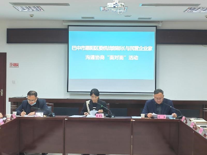11月22日,恩阳区委统战部部长与民营企业家沟通协商“面对面”活动举行,本次主题为推动文旅康养产业高质量发展。区委常委、统战部部长、区总工会主席刘素娟主持活动并讲话。7家文旅康养企业和区级相关部门、相关镇(街道)负责人参加会议。