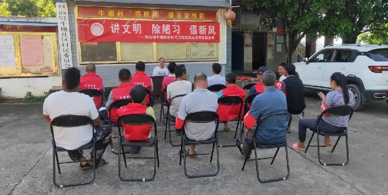 抓移风易俗,强化行动共识。 从村民中推选出有威望的老党员、老干部、村民代表、致富能手等组建了“三会”,配齐了“五员”,成立了牛棚村务党务财务监督会、邻里互助会、红白理事会。配齐了党风政风民风监督员、乡村及农房建设监督员、农业产业发展技术员、环境卫生保洁监督员、思想文化宣传员。全面开展人均环境整治工作,扎实开展好“四好村”创建活动,成立了牛棚村党员志愿服务队,各社组建青年志愿服务队,定期开展公益性活动,制定了《牛棚村农户环境卫生“七个好”检查评比制度》,细化“七个好”标准。大力宣传和倡导社会主义核心价值观,加强法治宣传教育,引导各族群众自觉守法、遇事找法、解决问题靠法。充分运用网络平台,通过村内社员群、朋友圈等平台传播有利于铸牢中华民族共同体意识的正能量、好声音,全村呈现出各民族共居、共学、共事、共乐的良好局面。