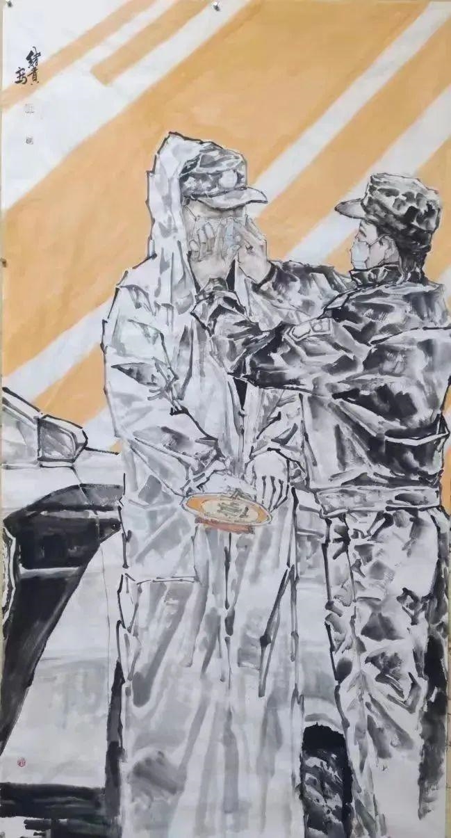 △德阳市新联会会员、自由画家李绪贵,创作作品《坚守第一线》,用艺术作品记录疫情防控瞬间,讴歌抗疫一线最美逆行者,传递正能量。