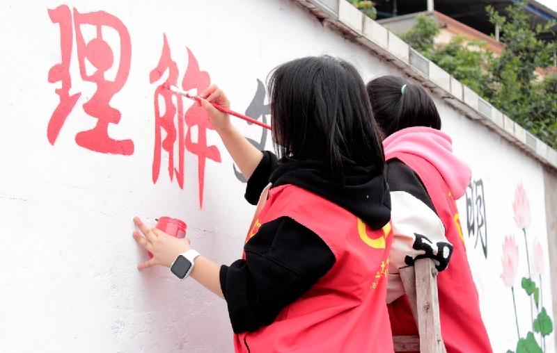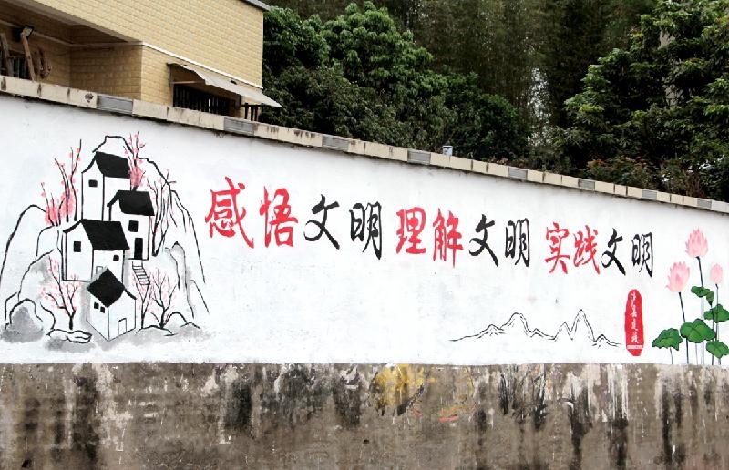 近日,泸州市泸县石桥镇的墙绘现场引来了村民们的关注。石桥镇统战志愿服务队伍结合不同墙体的高度和形状,将“乡村振兴战略、社会主义核心价值观、美丽村庄建设、移风易俗”等多项内容,用群众喜闻乐见的形式在墙壁上图文并茂地呈现出来。