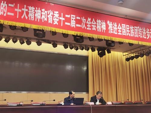 会上,张先明同志作了“学习党的二十大精神,贯彻统一战线工作条例,助力雅安创建全国民族团结进步示范市”的主题授课,组织学习了《中国共产党统一工作条例》及习近平总书记关于做好新时代党的统一战线工作的重要思想。