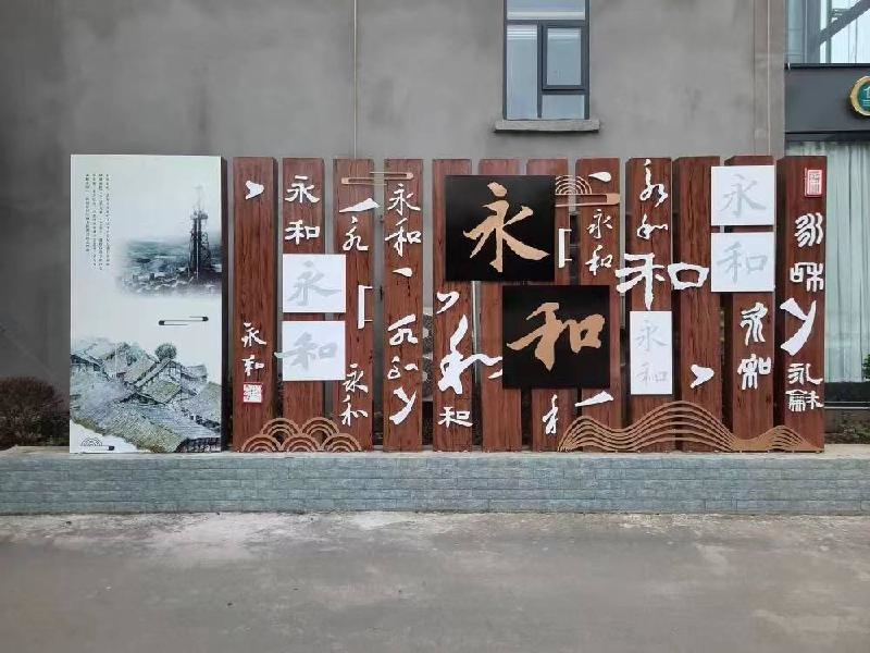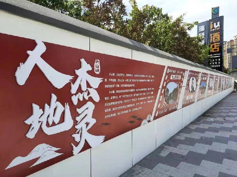 永和小区位于大山铺老街南缘,始建于上世纪80年代,是原川西南矿区仅次于本部的工作生活基地。区知联会接手任务后,立即组织工作小组查阅档案资料,访谈小区居民,提取内涵特质,紧紧抓住小区地处具有古老文化遗韵的大山铺,以及气矿职工的经济建设贡献,提炼出“人杰地灵,气矿荣光”主题,设计出“永和”书墙、人杰地灵、气矿荣光三大板块丰富内容,对应一种理念、一条老街、一项事业。“永和”书墙精选历代书法碑帖名家手迹,对应地方与矿区和谐相处、融合共生的理念。“人杰地灵”文化墙为30米长卷,展现大山铺地域上五位功勋成就卓著的志士名人和七大新老文化旅游景观标记,衬以电影胶片自贡剪纸艺术边饰,对应一条历史悠久底蕴丰厚、“填不满的大山铺”盛名数百年的老街。“气矿荣光”文化墙追溯川西南气矿的钻井产气业绩,讲述职工的功业与情怀,对应卓越的石油精神和事业。