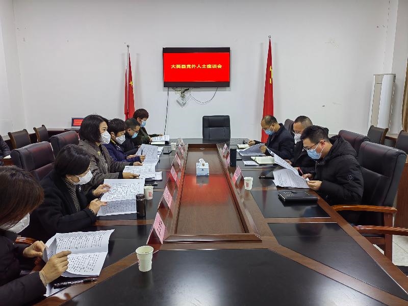 12月23日,中共大英县委常委、统战部部长田彬受县委书记胡铭超的委托,在县委统战部会议室主持召开党外代表人士座谈会,就《六届四次党代会报告(征求意见稿)》听取党外代表人士的意见与建议。民盟大英县总支、民建大英县总支、民进大英县总支、农工党大英县支部等4个民主党派主委和县工商联负责人、无党派代表人士参加会议。
