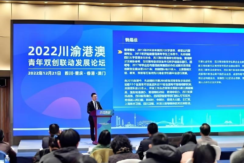 12月21日,2022川渝港澳青年双创联动发展论坛在四川天府新区天府国际会议中心举办。活动以“线上+线下”的方式联动进行,在川、渝、港、澳四地分设四个会场,搭建促进跨地区交流联动发展平台,推动四地青年双创联动,共谋发展。