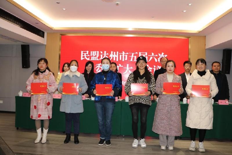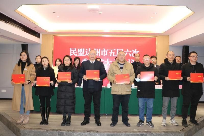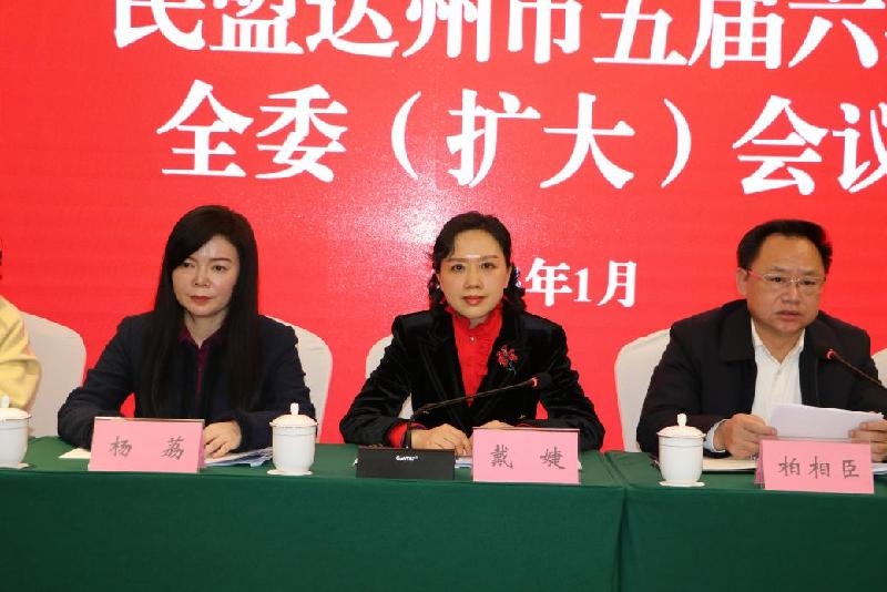 1月7日,民盟达州市委召开五届六次全委(扩大)会议。民盟达州市委主委、市政协副主席戴婕主持会议并讲话,中共达州市委统战部常务副部长、市侨办主任柏相臣应邀到会指导。民盟达州市委副主委杨荔、王勇、柏晶、吴星辰出席会议,民盟达州市第五届委员会委员参加会议,不是市委委员的市直属支部主委、各内设机构主要负责人以及部分优秀骨干盟员代表列席会议。
