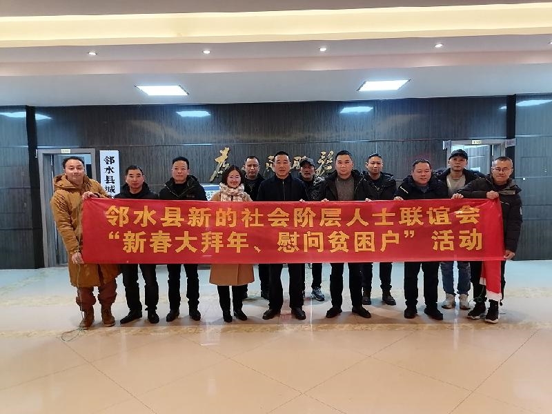 邻水县新联会会长江勇表示,一年一度的春节即将来临,此时此刻,邻水县新联会更加关注农村的困难群众能否过一个祥和快乐的春节。为此,邻水县新联会组织人员和物资,开展“新春大拜年、慰问困难群众”的活动,通过此次活动,真诚呼吁社会各界爱心人士能够积极行动起来,关心关爱和帮助困难群众们,为营造和谐、温暖的社会大家庭贡献自己的一份力量。”