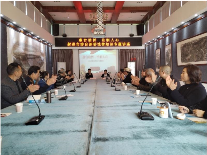 为了进一步宣传党的涉台涉侨法律知识,增强我市台胞台属、归侨侨眷的法律意识,切实保障合法权益。3月31日,射洪市侨台办、市侨联、市台联在市台侨之家联合举办“助侨惠台·法润人心”涉台涉侨法律知识专题讲座,全市台胞台属、归侨侨眷30余人参加活动。